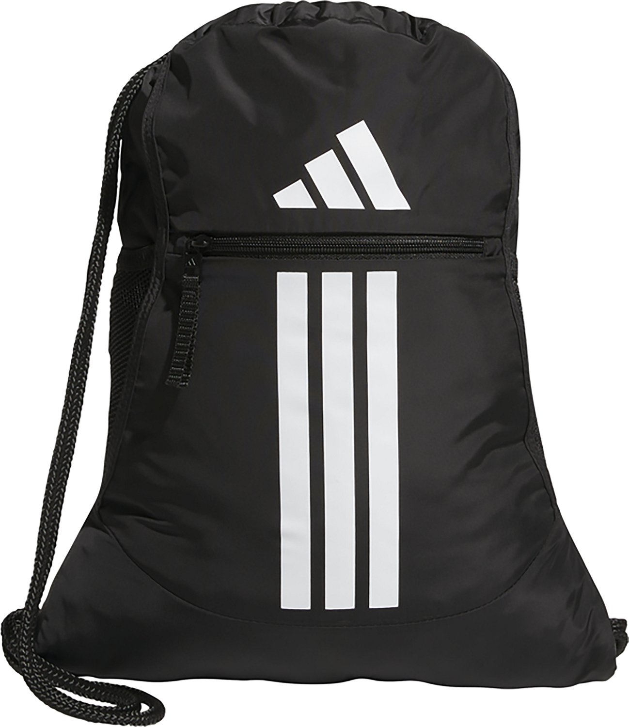Carry everything you need in the adidas Alliance 3 Sackpack. It is made of 100% polyester to enhance durability. The large main compartment with a drawcord closure secures your items, and its thick-gauge drawcords as straps help distribute the weight. The mesh slip pockets hold onto water bottles to keep you hydrated on the go.