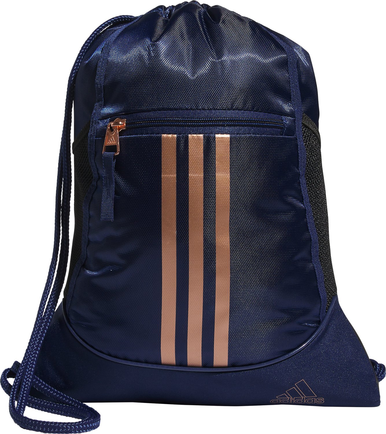 Stay ready to train hard when you carry the adidas Alliance II Sackpack. The water-repellent material protects your gear, and the main compartment offers storage for shoes, clothes or for any other belongings. The zippered exterior pocket keeps additional essentials secure and easy to access, while the drop mesh water bottle pockets allow you to store beverages and snacks for after the workout.