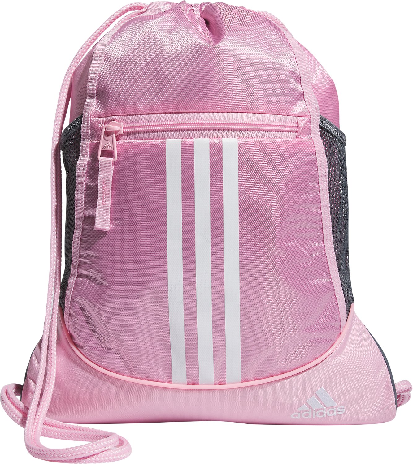 Stay ready to train hard when you carry the adidas Alliance II Sackpack. The water-repellent material protects your gear, and the main compartment offers storage for shoes, clothes or for any other belongings. The zippered exterior pocket keeps additional essentials secure and easy to access, while the drop mesh water bottle pockets allow you to store beverages and snacks for after the workout.