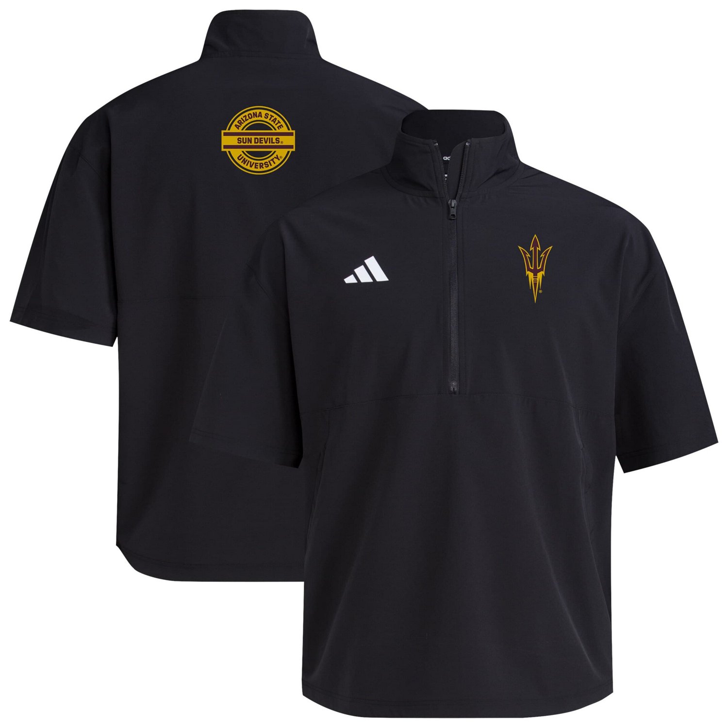Prepare for rainy days with this Arizona State Sun Devils 2024 Half-Zip Short Sleeve Training Jacket from adidas The lightweight design is made with water-resistant ripstop fabric and a loose fit to keep you dry and comfortable With metallic details this Arizona State Sun Devils jacket lets you represent your favorite team in functional style