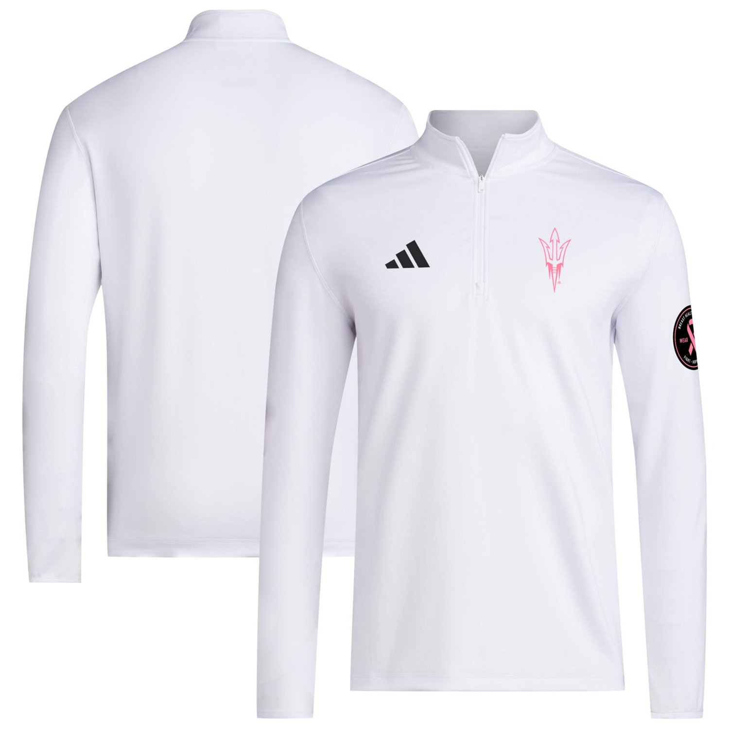 Show your support for breast cancer awareness and your Arizona State Sun Devils with this stylish Wear Pink Quarter-Zip Pullover from adidas Featuring a subtle pink ribbon graphic and bold Arizona State Sun Devils logo this pullover combines purpose with team pride The lightweight breathable fabric ensures comfort during any activity while the quarter-zip design allows for easy temperature control Whether you're cheering from the stands or hitting the gym this pullover is a meaningful way to represent your team and a worthy cause