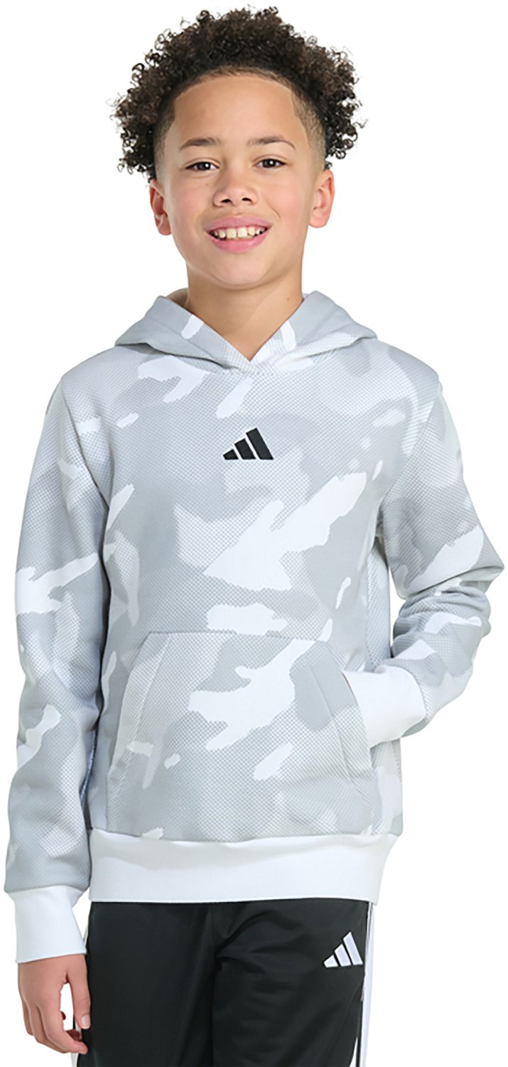 Take on cool conditions with help from the adidas Boys' Halftone Camo Printed Fleece Pullover Hoodie, which is made of 70% cotton and 30% polyester printed fleece. The hood helps cover your head to protect against the elements, and the hoodie features a camo pattern to help you feel bold.