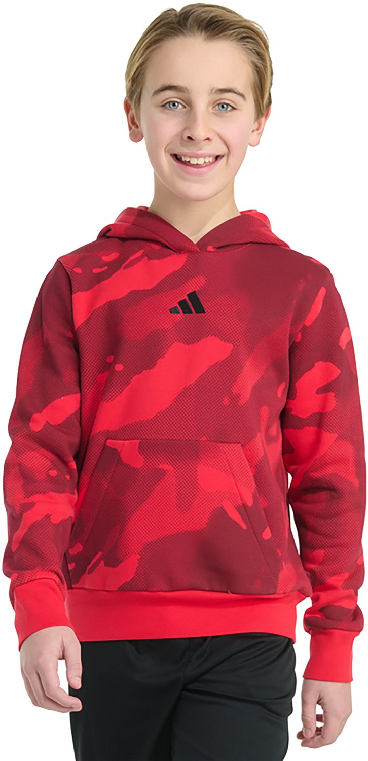 Take on cool conditions with help from the adidas Boys' Halftone Camo Printed Fleece Pullover Hoodie, which is made of 70% cotton and 30% polyester printed fleece. The hood helps cover your head to protect against the elements, and the hoodie features a camo pattern to help you feel bold.