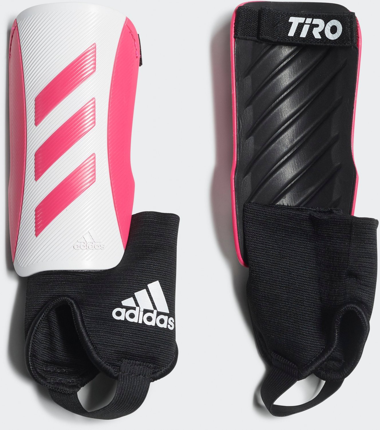 Take your game to the next level with the adidas Boys' Package Tiro Shin Guards. The polypropylene and TPR material affords durability, while the asymmetrical shields provide a contoured fit. The molded EVA backings offer comfort, and the single-strap closures deliver a snug fit.