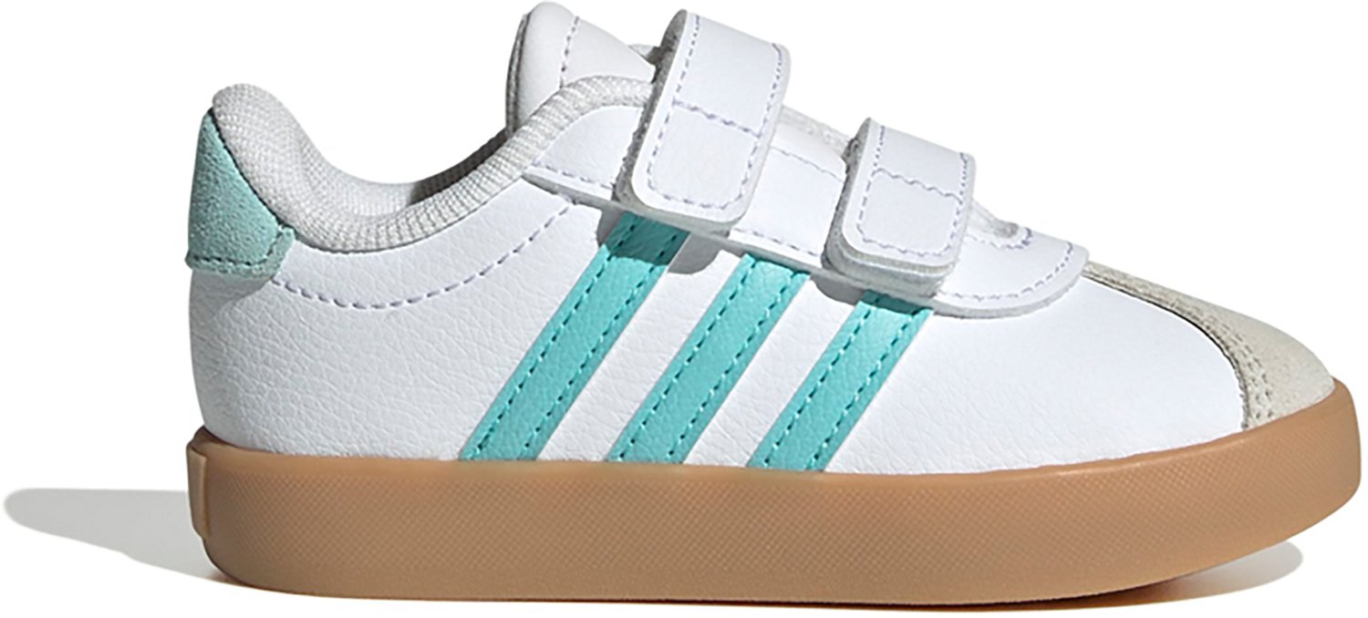 Keep going with the adidas Kids VL Court 2.0 Shoes. The synthetic leather uppers afford durability, while the EVA Ortholite insoles offer cushioned comfort. The rubber cupsoles promote stability, and the hook-and-loop closures ensure a snug fit.