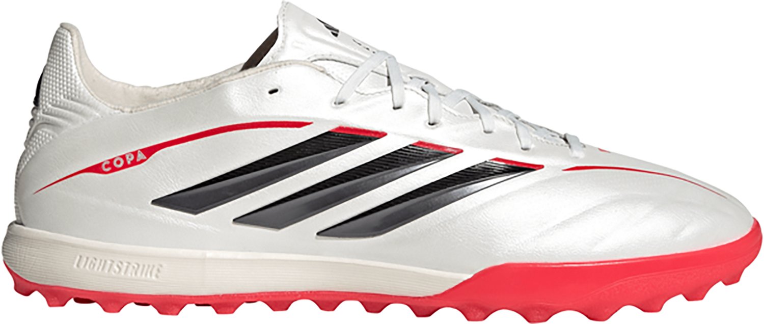 Control the turf with the adidas Copa Pure IV Pro Soccer Turf Cleats. The Fusionskin uppers offer a soft touch, while the Ortholite sockliners provide a comfortable feel. The EVA midsoles ensure cushioning and flexibility, and the rubber outsoles have nonremovable studs for improved traction.