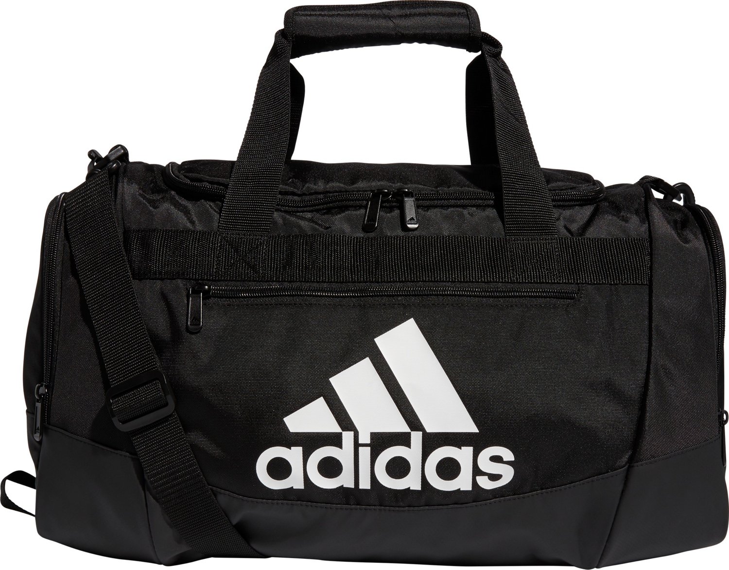 Pack up and go with the adidas Defender IV Duffel Bag. Constructed with polyester material, this bag affords durability, while the roomy main compartment stands tall for easy packing and storage space. The water-resistant base helps protect your gear from the elements, and the haul handle allows for easy carrying.