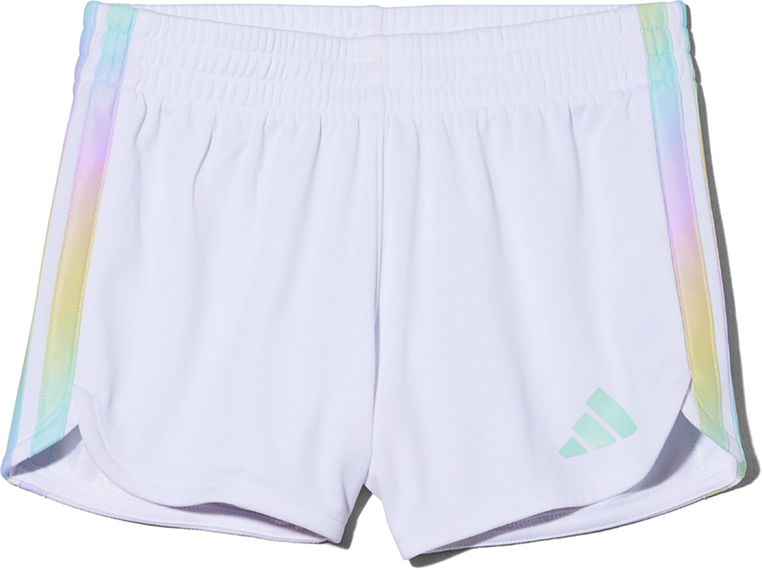 Have your little on looking their best in the adidas Girls' Gradient 3S Mesh Pacer Shorts. They are made of 100% recycled polyester. The curved hems with vents enhance the ease of movement, and their elastic waistband is equipped with an adjustable drawcord. The inseam varies by size.
