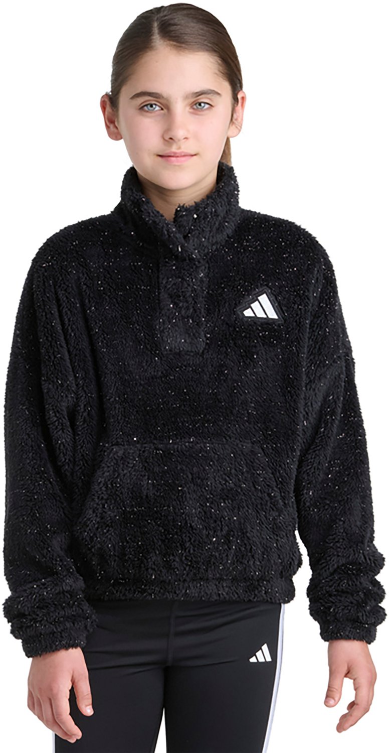 adidas Girls' Mock Neck Lurex Sherpa Long Sleeve Pullover
