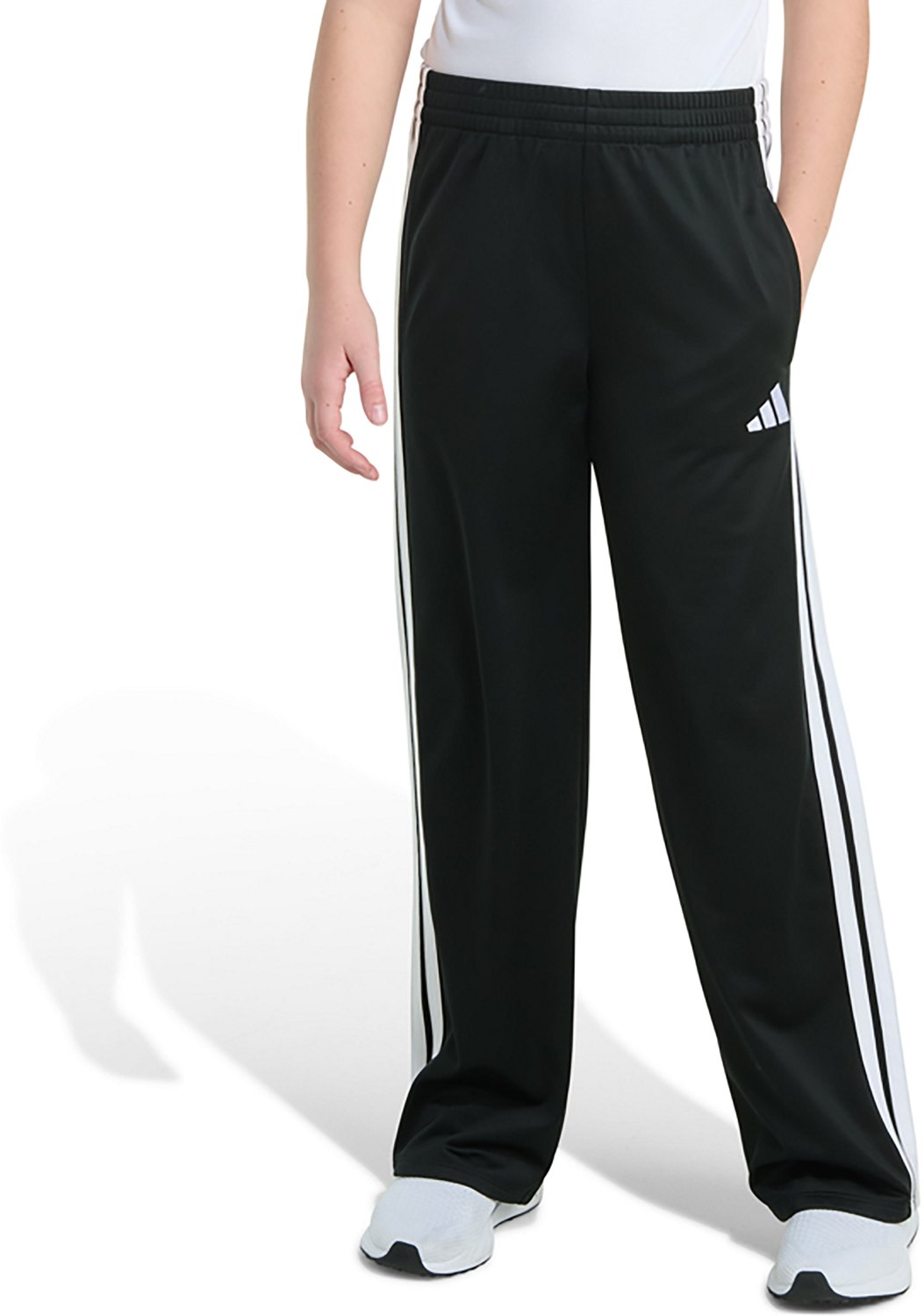 Enjoy comfort and an active style with the adidas Girls' Tricot Wide Leg Pants. The 100% recycled polyester tricot construction is durable and comfortable, and the relaxed fit style is roomy and easy to wear.