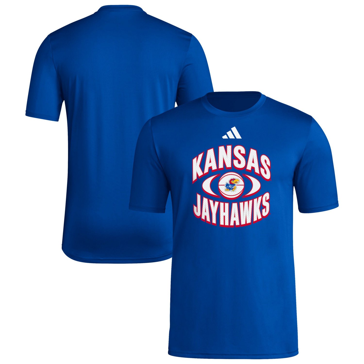 Elevate your Kansas Jayhawks game-day attire with the adidas Basketball On Court Orbit Pregame T-Shirt This shirt features a screen-printed wordmark and logo allowing you to show your Kansas Jayhawks pride in style Made from 100 recycled polyester it keeps you cool and comfortable whether you're cheering from the stands or playing a pick-up game yourself