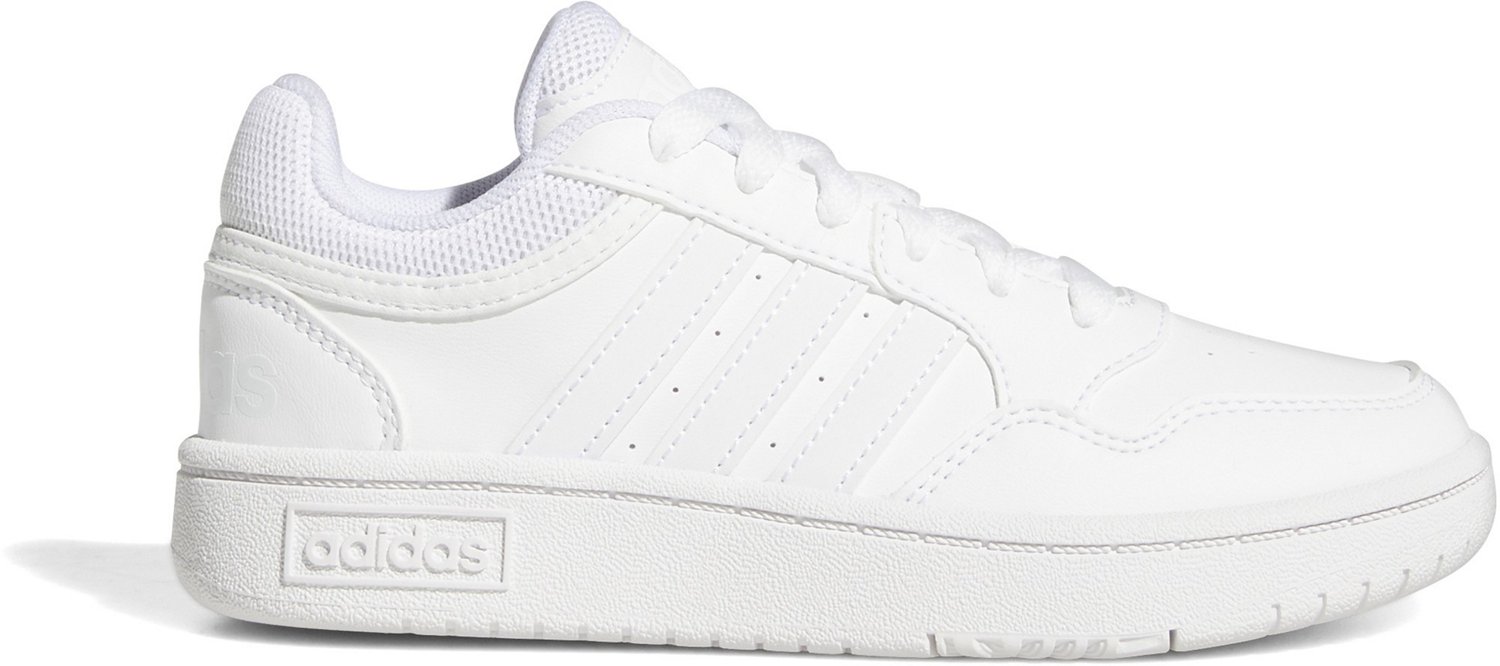 Enjoy time out on the court in the adidas Kids Hoops Mid 3.0 Basketball Shoes. The synthetic leather uppers feel soft and withstand wear and tear, and the mesh lining and collars help keep your feet cool and dry. The cushioned midsoles cradle your feet in comfort, and the lace-up closure with hook-and-loop straps promote a snug fit.