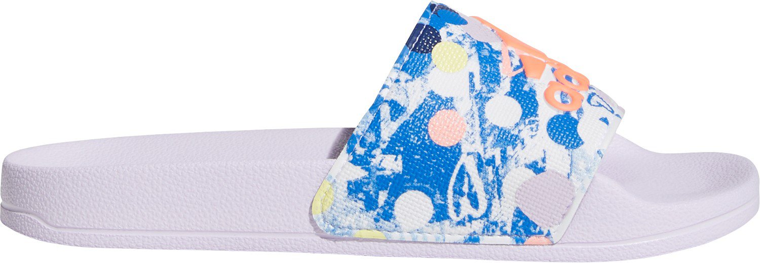 Relax after a day at the beach in the adidas Kids' Adilette Shower Slides. Crafted with synthetic uppers, these slides provide a comfortable feel, while the Cloudfoam footbeds offer increased cushioning. The slip-on design allows for easy on and off, and the unique design shows off your stylish side.