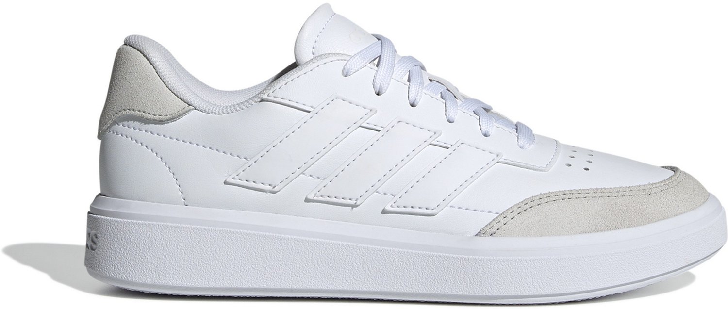 Level up your kid's playground style with the adidas Kids Courtblock GS shoes! These cool sneakers boast a classic tennis shoe look that goes with anything. Breathable materials and a comfy fit keep tiny feet happy all day long. Elastic laces and a strap make getting ready a snap, so your little one can conquer the playground independently. Durable enough for all their adventures, the grippy soles ensure confident footing on any terrain. Get ready for playtime fun with the adidas Kids Courtblock GS shoes!