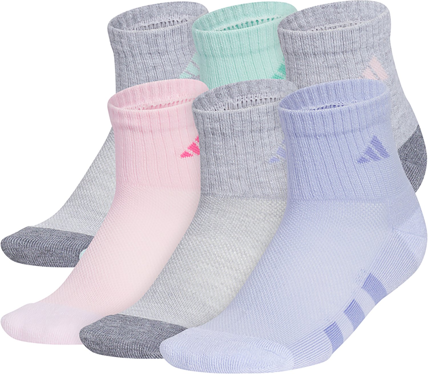 Pull on the adidas Kids' Superlite 3.0 Athletic Cushioned Quarter Socks 6 Pack and head out for a day of fun. These socks are made of polyester and spandex to provide stretchy comfort, and Climacool® technology helps keep feet dry by pulling away moisture and sweat. The footbeds provide generous cushioning.