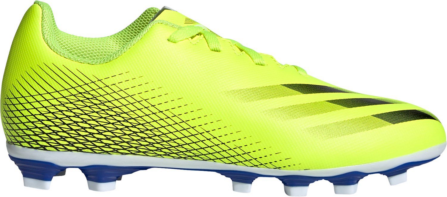 Leave the competition in the dust in these adidas Kids' X Ghosted.4 FG Soccer Cleats. The lightweight, synthetic coated upper is designed for rapid acceleration. The flexible, studded outsole is engineered for traction on firm ground, hard ground, or artificial grass fields.