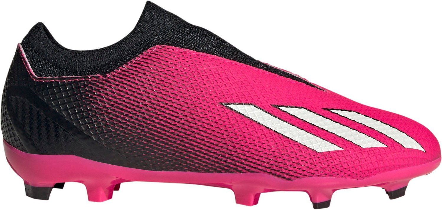 Help kids overtake the competition in the adidas Kids' X Speedportal .3 Laceless Firm Ground Cleats. The lightweight mesh uppers feature coated textile overlays for additional support, while external heel locks provide the stability they need for aggressive cuts. TPU cleats offer grip on firm ground fields.