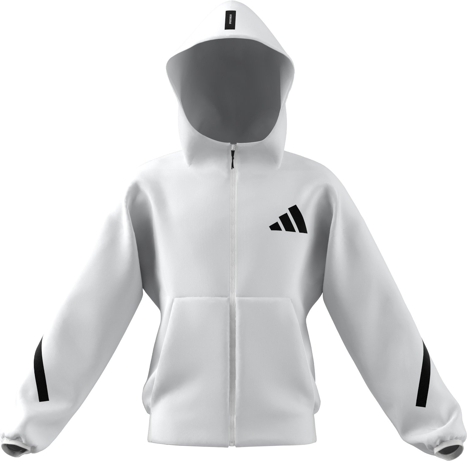 Stay warm while practicing in mild weather with the adidas Kids' Z.N.E Full Zip Hoodie. The polyester and cotton blend provides a soft and natural feel, while the hood helps keep you warm. The rubber-printed 3-Bar adidas logo adds a touch of iconic style.