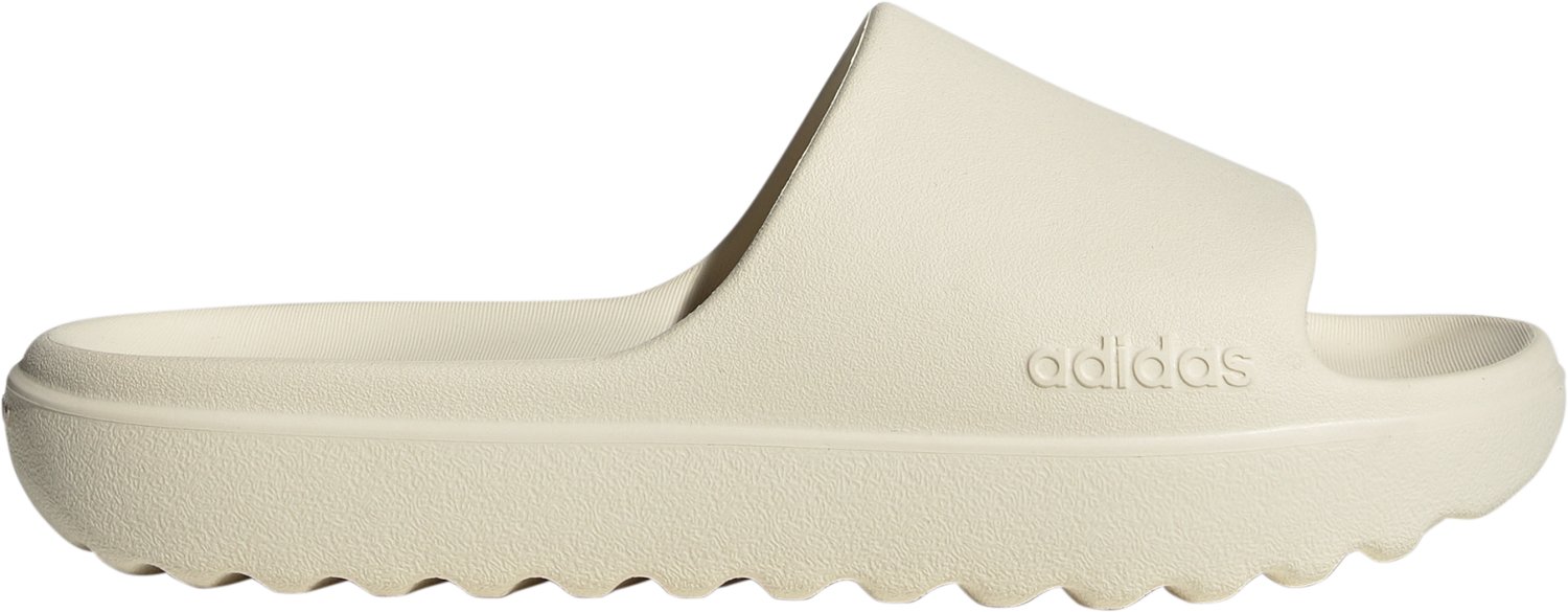 Relax on your day off with the adidas Men's Adilette Lumia Slip On Slides. These slides are made of durable synthetic uppers, and they have synthetic linings for a soft feel. The contoured footbeds provide comfort, while the synthetic outsoles and flex grooves deliver a smooth ride.
