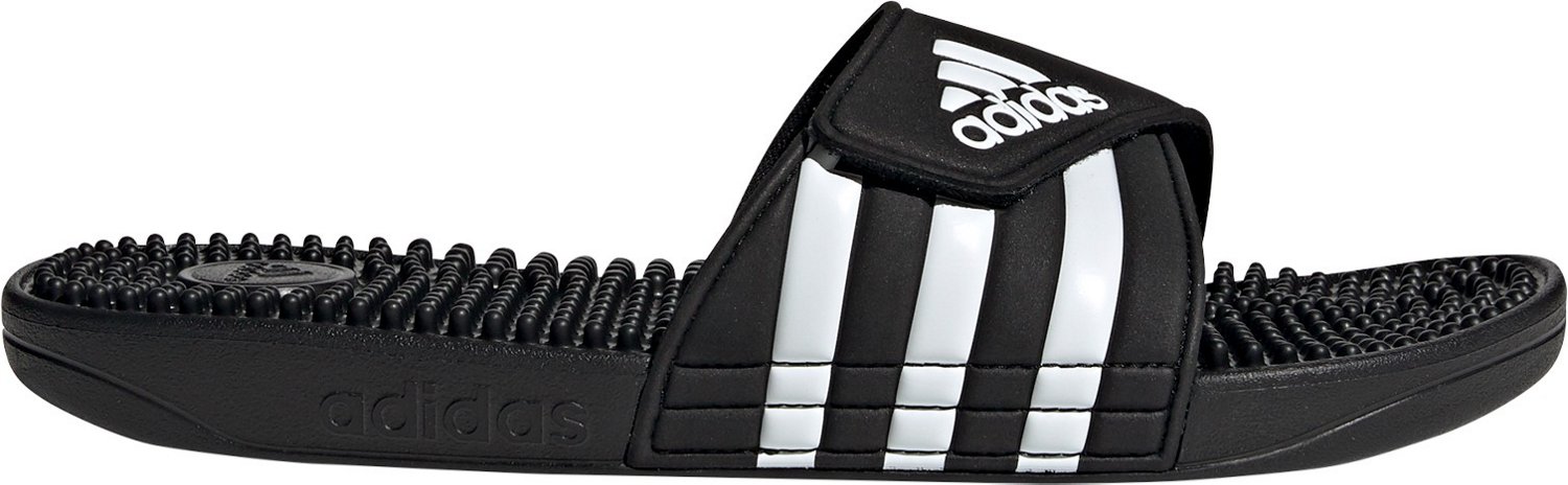 From changing out of your cleats to lounging by the pool, the adidas Men's Adissage Slide Sandals are great for almost any occasion. The Cloudfoam technology provides soft, lightweight comfort, and the EVA nubs on the insoles massage your feet as you walk. These sandals feature the classic adidas™ logo and hook-and-loop straps that ensure a secure fit. Slip-on design.