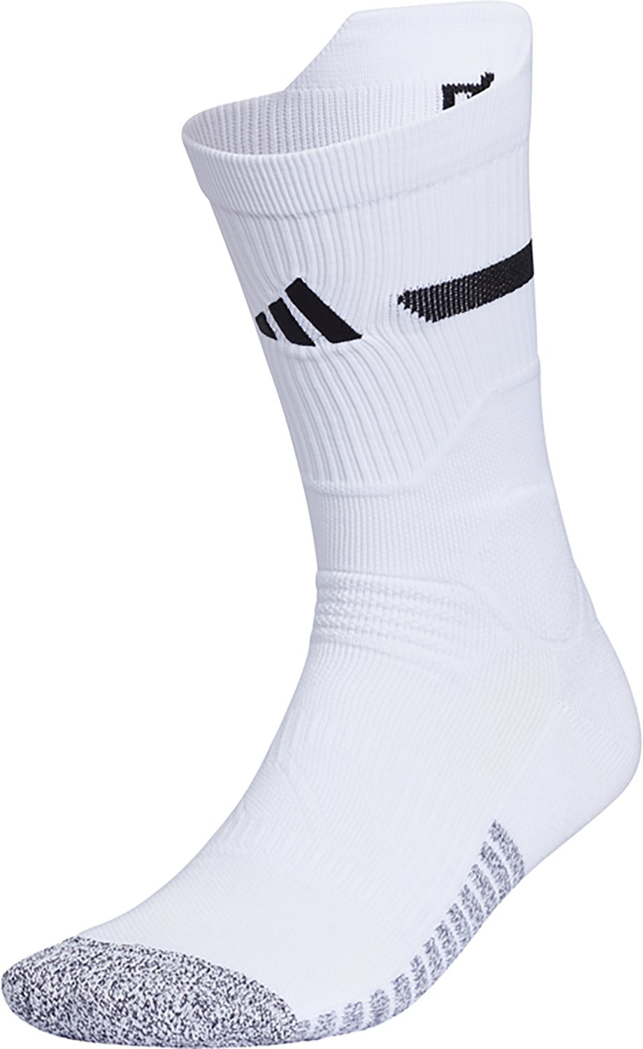 You can excel in practice or games when wearing the adidas Men's Adizero 2 Football Cushioned Crew Socks. These crew-length socks are made of a polyester blend that features moisture-wicking yarns, helping athletes stay focused, and there is knit-in compression in the arches and ankles to give you the support you need.