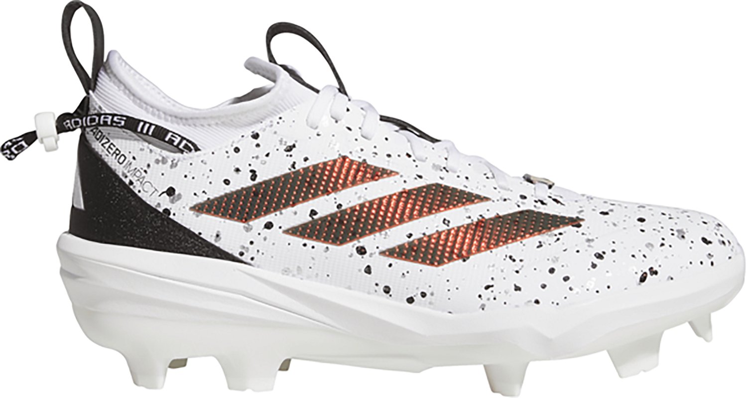 Show off your speed with the adidas Men's Adizero Impact TPU 2.0 Shades Baseball Cleats. The textile uppers afford durability, while the Lightstrike midsoles provide comfort and support. The lace closures offer a secure fit, and the paint splatter accents and iridescent trims deliver a stylish look.