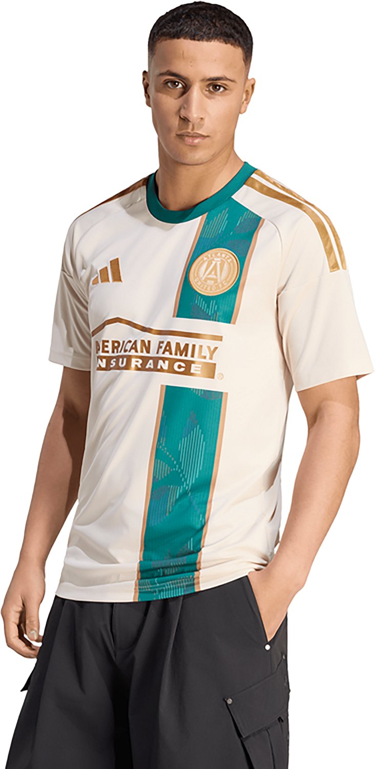 Show support for your favorite team when you wear the adidas Men's Atlanta United FC 26/27 Away Jersey. It is made of 100% recycled polyester. The crew neckline creates a casual look, and its Climacool technology wicks and disperses sweat for a cool, dry and distraction-free performance. The Atlanta United club crest shows off your team spirit.