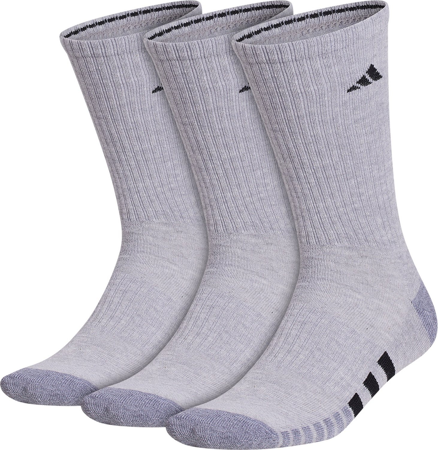 Stay comfortable all day in the adidas Men's Cushioned 3.0 Crew Socks 3-Pack. These crew socks are made from polyester for durability and have moisture wicking yarn to keep your feet dry and comfortable. The arch compression provides added support, while the targeted mesh ventilation provides added breathability.