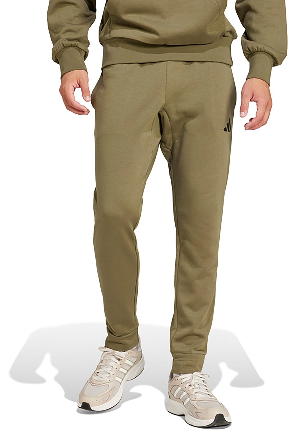 Experience comfort with the adidas Men's Essentials FeelCozy Joggers. The cotton and polyester material provides a comfortable feel, while the mid-rise elastic waist and drawstring combo offers a custom fit. The small logo adds a stylish touch.