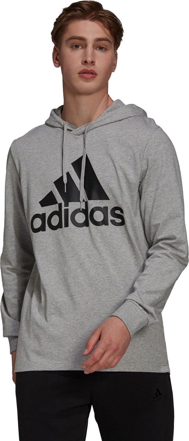 Enjoy comfort on your next outing with the adidas Men's Essentials Pullover Hoodie. The single jersey cotton fabric provides a comfortable feel, while the moisture-wicking technology helps keep you cool and dry. The hood and drawstring combo offers an adjustable fit, and the graphic design delivers a stylish look.