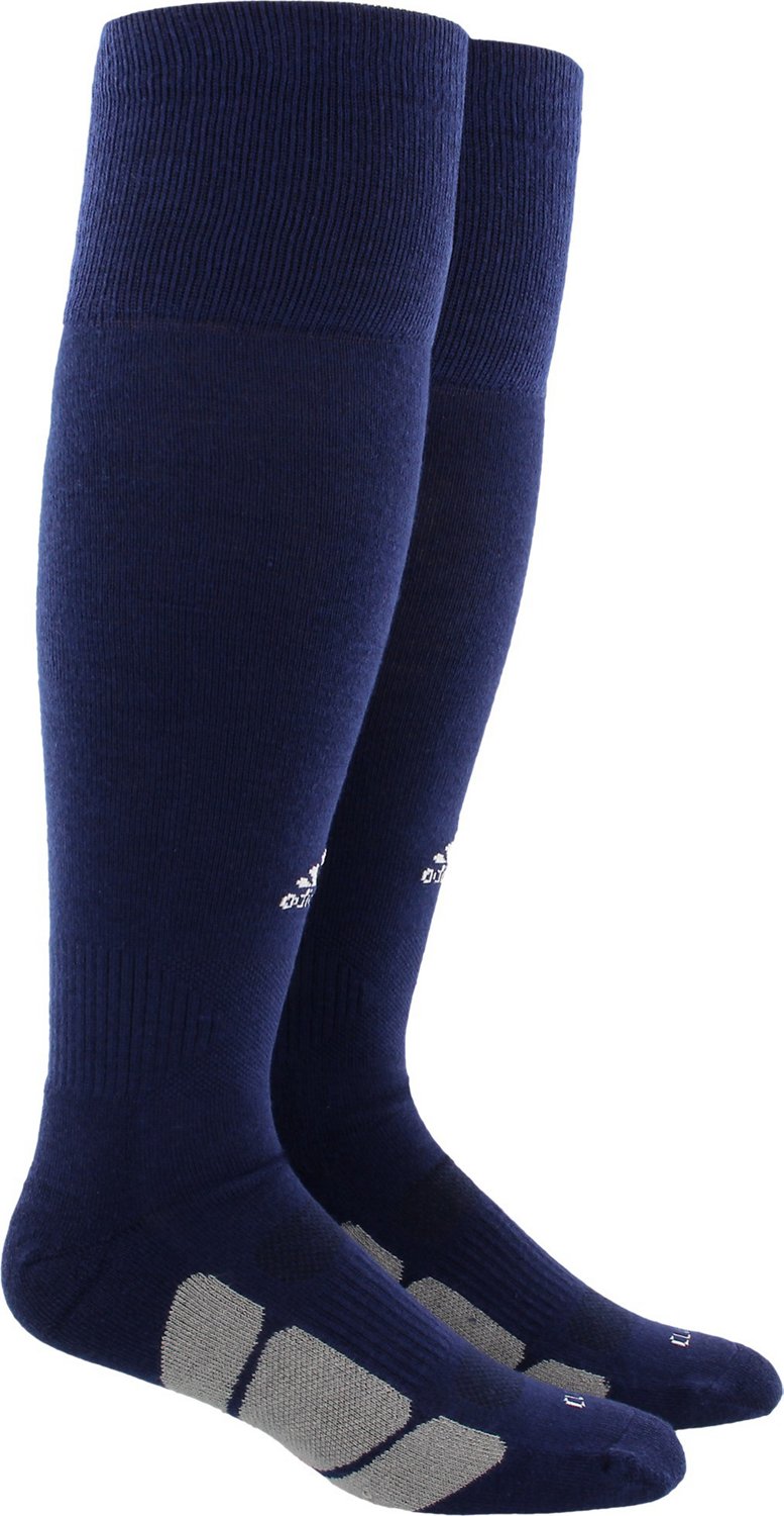 Keep feet comfortable throughout the game with adidas Men's Icon Baseball Over The Calf Socks 1-Pack. The moisture-wicking fibers draw sweat away from your skin. Heavy-duty cushioning absorbs shock from impact while compression bands support your heels and arches. Double welt cuffs and strategic reinforcement enhance durability in high-wear areas.