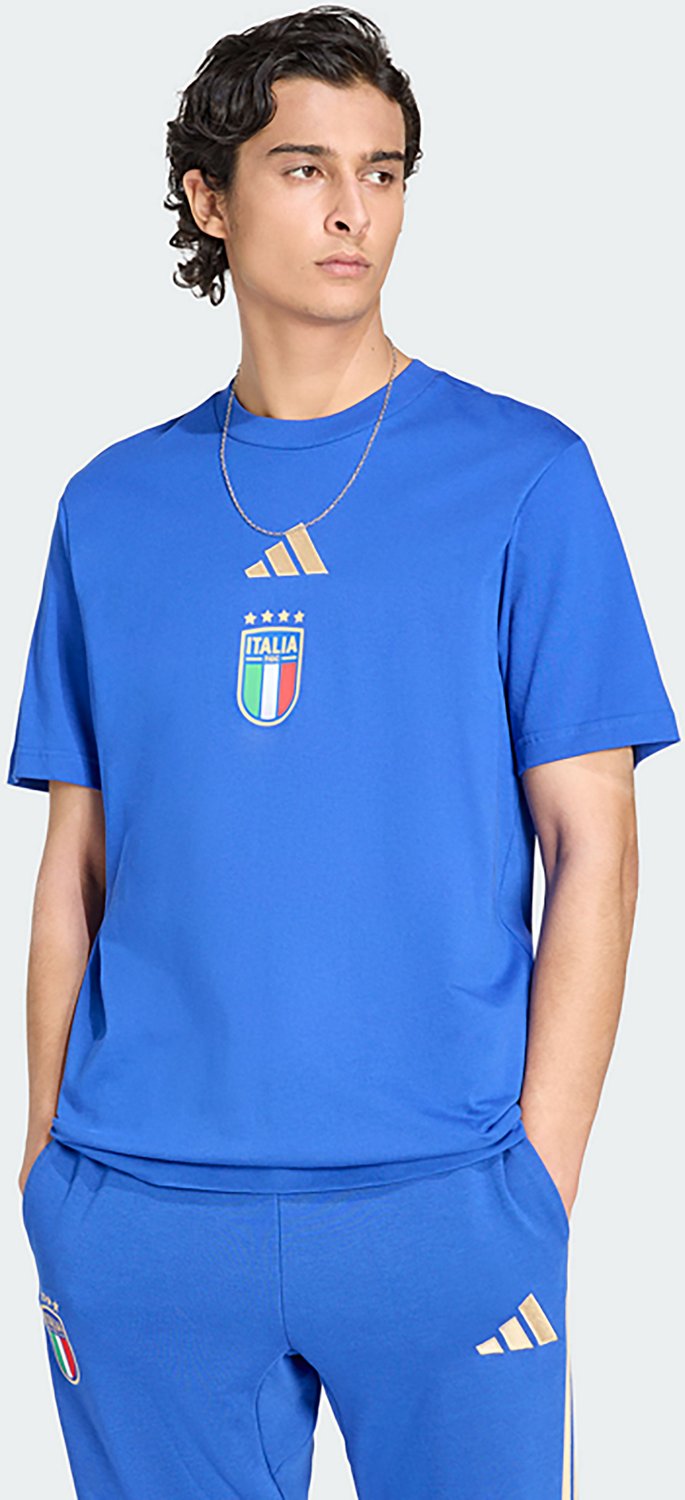 The adidas Men's Italy World Cup 2026 DNA Graphic Tee is a staple for any football fan's wardrobe. This regular-fit tee features updated fits and fabrics for an easy, everyday look. With its modern design and elegant style inspired by Italian football, this tee allows fans to showcase their passion in style.