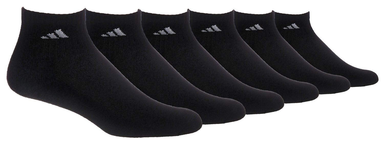 The adidas Men's Large Athletic Quarter Socks 6 Pack are made of polyester and spandex and have 360° of cushioning for comfortable wear and durability. The socks feature climalite® technology to wick away moisture and help keep your feet cool and dry.