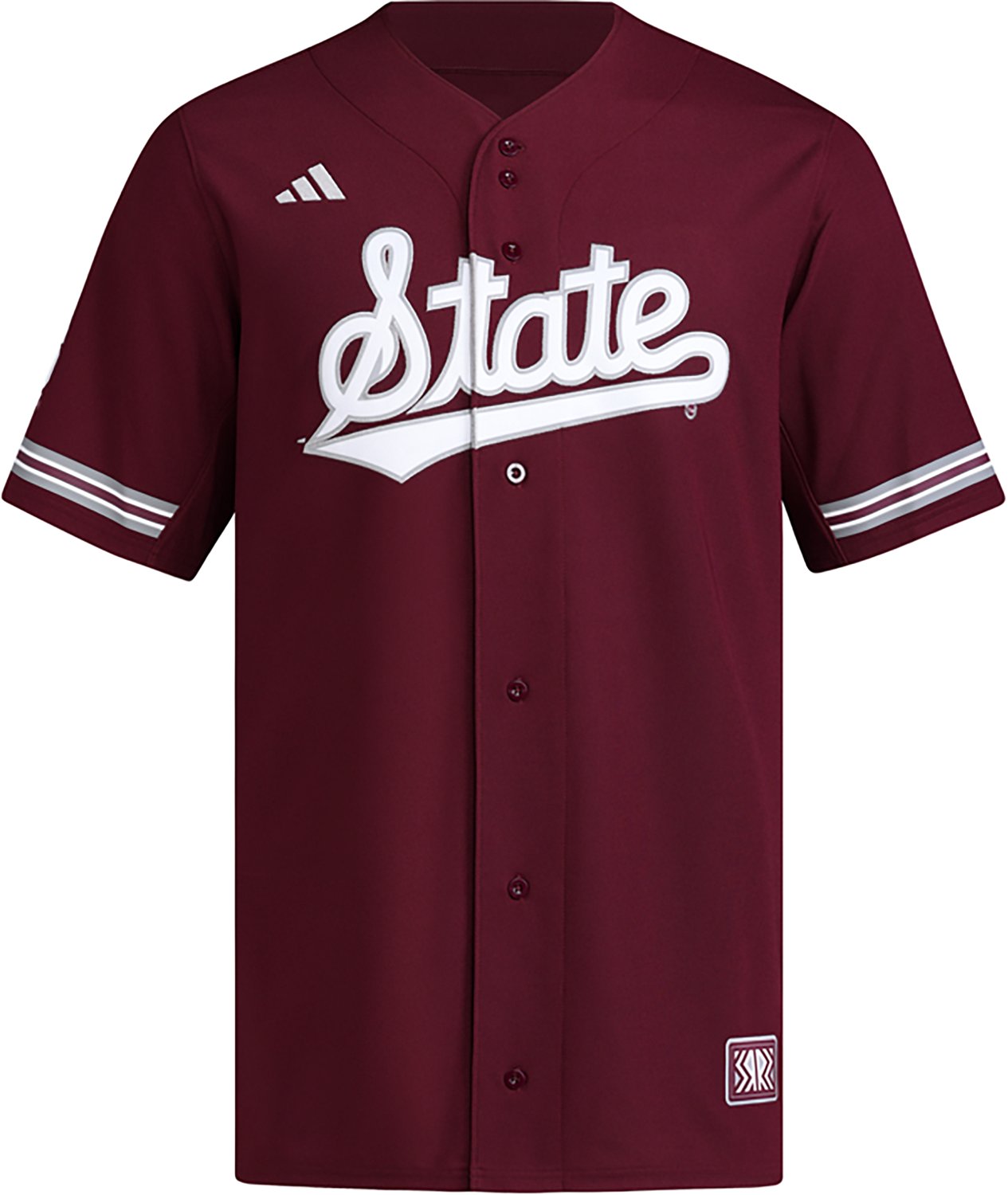 Button up the adidas Men's Mississippi State University Reverse Retro Replica Baseball Jersey and get ready to celebrate along with your favorite team. This jersey is made of 100% recycled polyester to help provide long-lasting comfort, and the MS State team theme helps let everyone know you root for the Bulldogs.