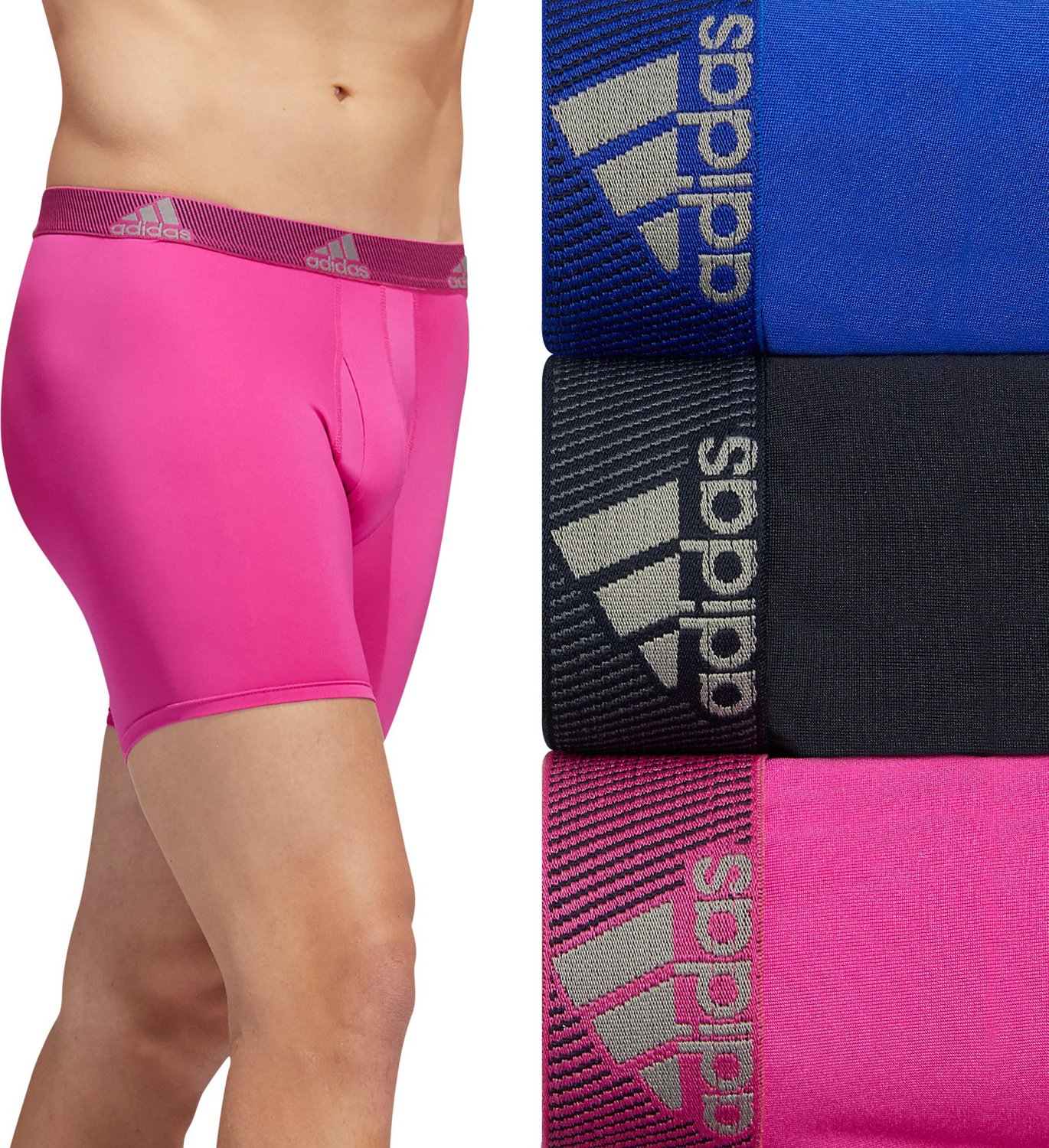 Stay comfortable anywhere you go in the adidas Men's Performance Boxer Briefs 3-Pack. The polyester and spandex blend construction offers softness and lightweight, flexible wear. The moisture management treatment wicks sweat and quickly dries moisture for a dry feel, while the plush waistband encourages a secure, comfortable fit.