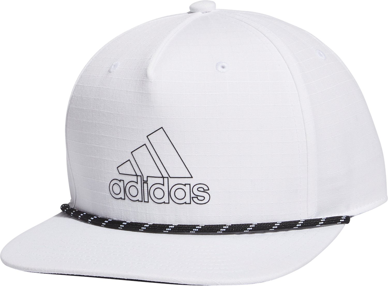 Show off your sport style with an adidas Men's Performance Rope Snapback Hat. Soft cotton fabric delivers day-long comfort while an adjustable snapback ensures a secure fit. Speckled rope details and a brand logo add athletic flair.