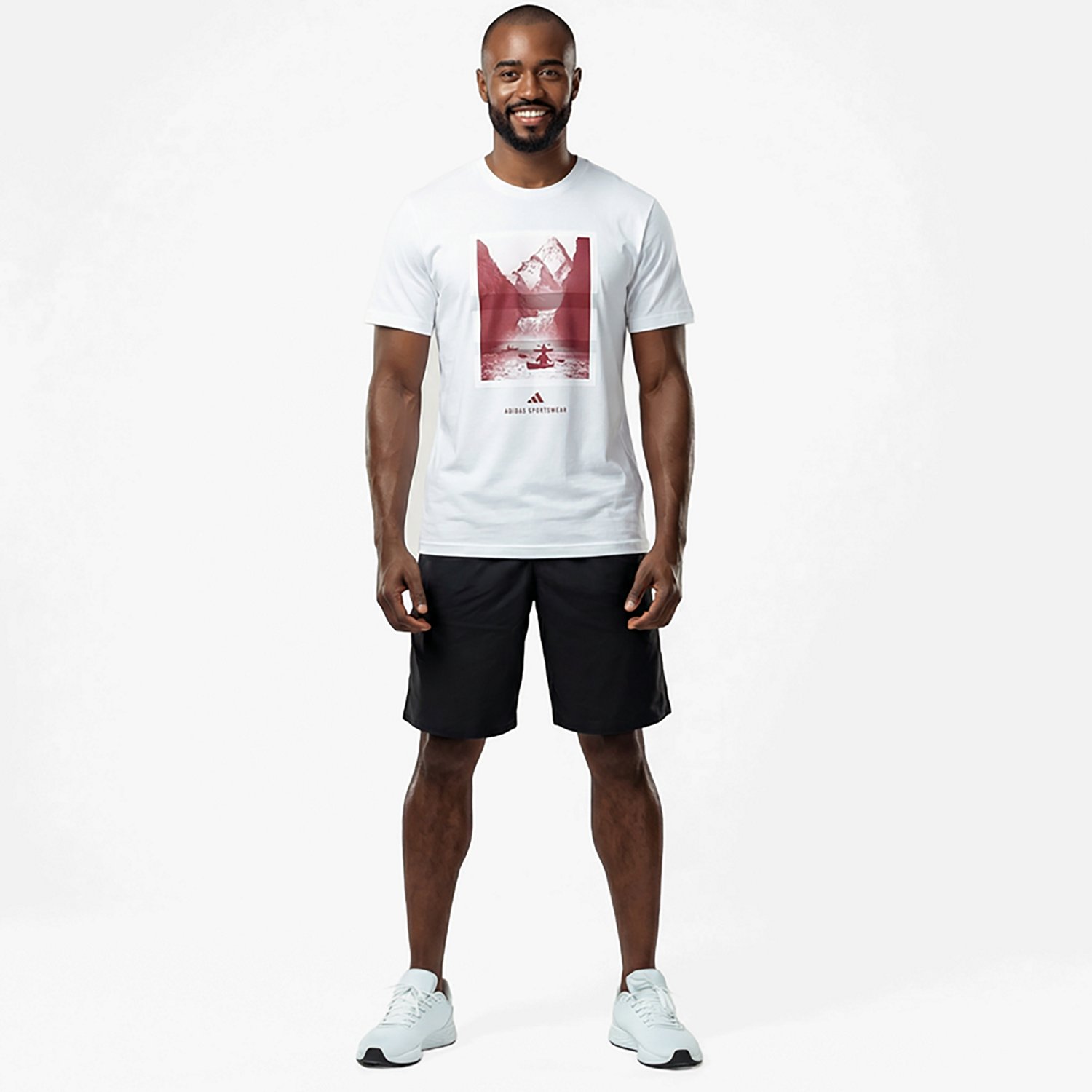 Look your best when you wear the adidas Men's Sportswear Outdoor Kayaking Graphic T-shirt. It is made of 100% cotton. The short sleeves keep you cool, and its collar neckline offers a more sophisticated look. The multicolor rubber screen print adds a splash of color.