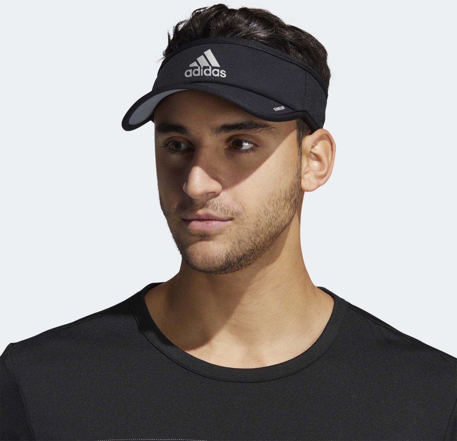 Take a stroll wearing the adidas Men’s Superlite 2.0 Visor. The mesh keeps you feeling cool and dry, and the reflective brand detail promotes visibility in low-light situations