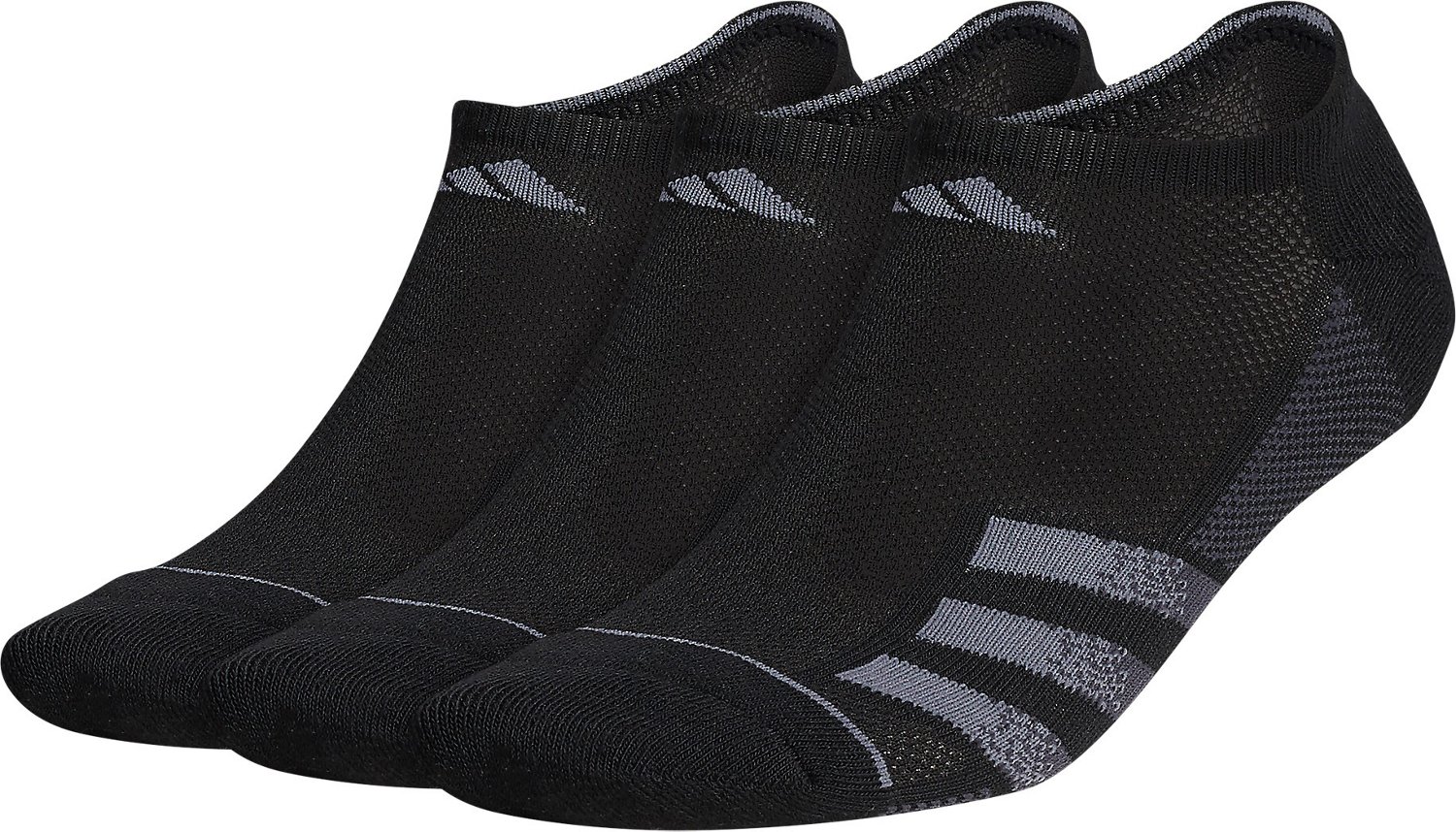 Run with comfort wearing the adidas Men's Superlite Stripe III No Show 3-Pack. The targeted cushioning at heel and toe softens impact with every step, and the mesh ventilation at the top of the feet provides a breathable wear. The 3-stripes displays your support for the brand.