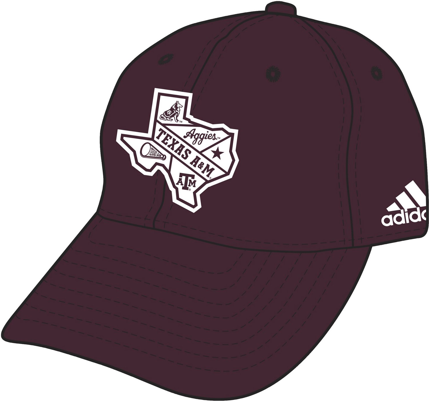Support your Aggies with the adidas Men's Texas A&M University State Slouch Adjustable Cap. This everyday cap features durable knit fabric, a curved bill for shade and an adjustable closure to ensure the perfect fit. Embroidered team graphics add a spirited look.
