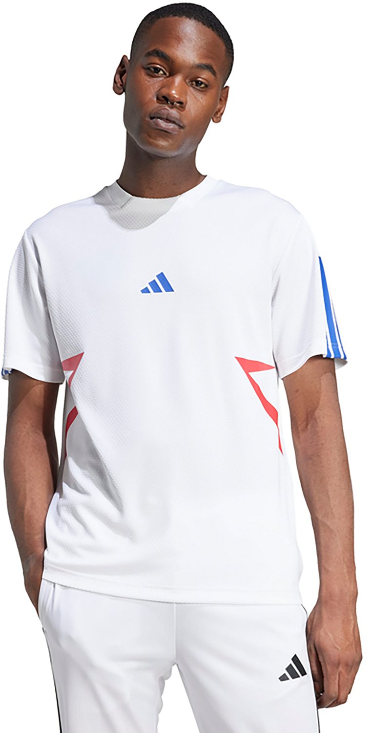 If you want to show off your love for all things soccer, turn to the adidas Men's Tiro Colorblock T-shirt. This T-shirt is made of 100% polyester to help offer a lasting, comfortable feel, and the House of Tiro logo and 3-Stripes branding make it clear which sport you live for.