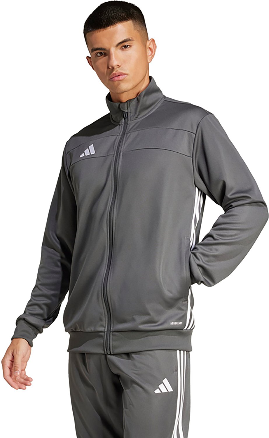 Look your best when you wear the adidas Men's Tiro25 Essentials Training Jacket. It is made with 100% recycled polyester. The AEROREADY technology ensures you stay dry and comfortable, and its full zip closure allows for an easy on and off. The side zip pockets allow you to carry around small items.