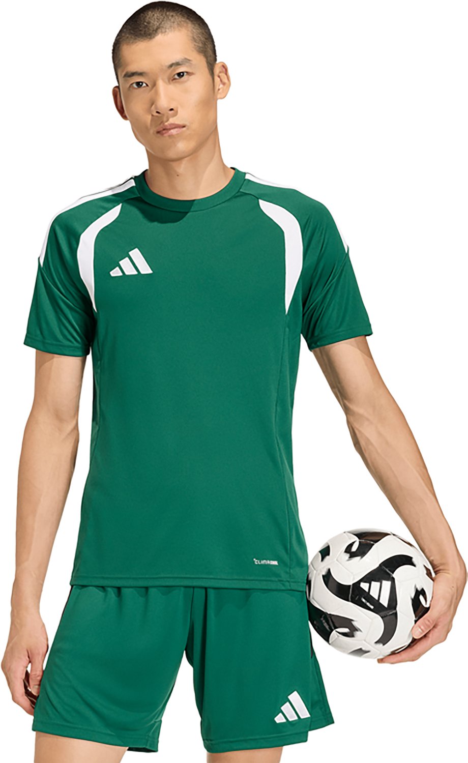 Represent modern soccer when you wear the adidas Men's Tiro26 League Jersey. It is made of 100% recycled polyester. The Climacool technology wicks away sweat and quickly dries, and its mesh chest inserts and side panels enhance breathability. The classic embroidered logos and laid-on stripes deliver a modern soccer look.