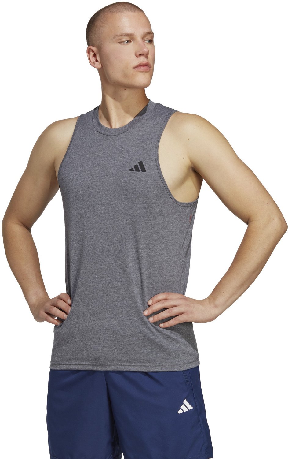 Reach your training goals with the adidas Men's Train Essentials FR Sleeveless Tank. The 70% recycled polyester and 30% cotton construction offers a soft feel all day, and the AEROREADY technology helps keep you dry. The sleeveless design provides optimal range of movement, and the slim fit delivers fast actions with the snug build.
