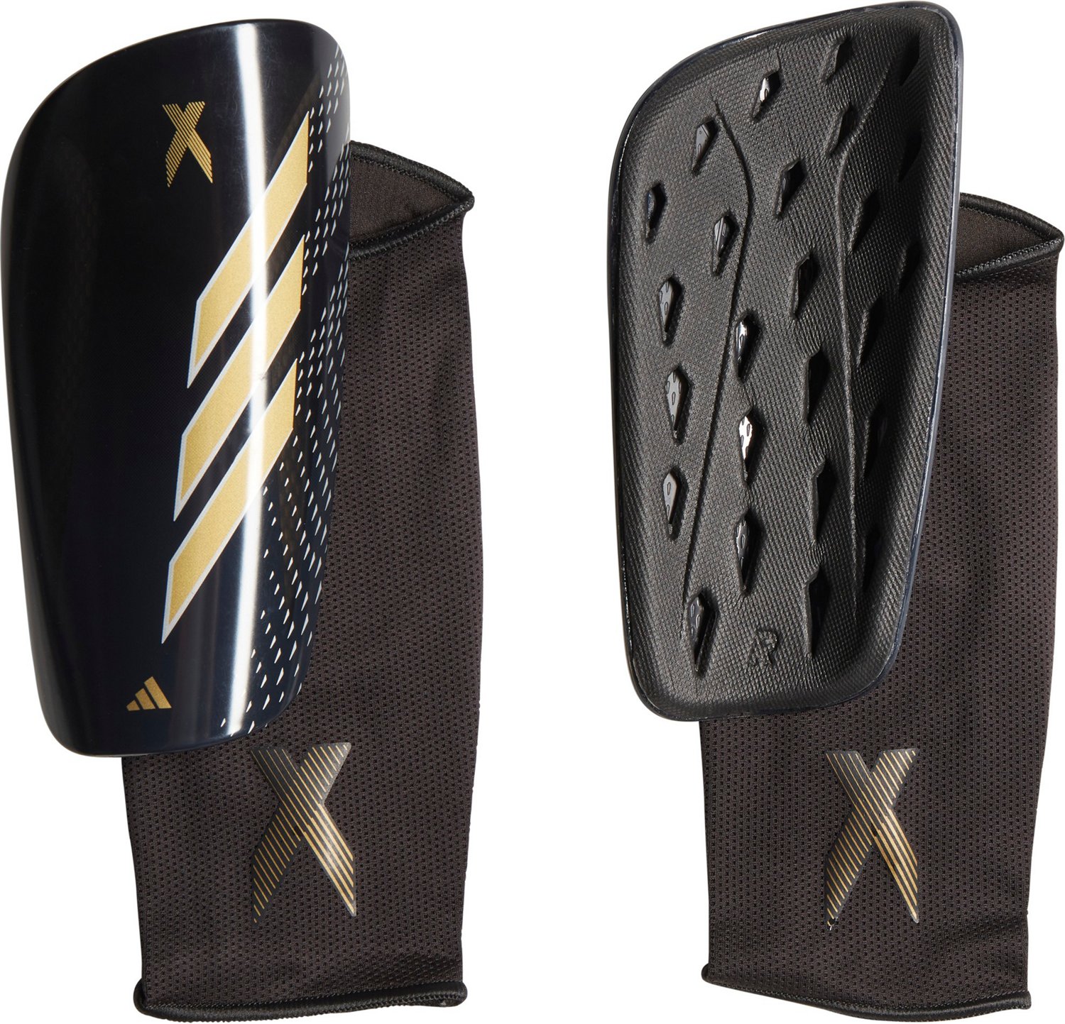 Protect your shins with the adidas Men's X League Soccer Shin Guards. The injection molded resin construction delivers increased protection, while the asymmetric shields offer a contoured fit. The compression sleeves keep the guards secure, and the perforated backings promote breathability and help disperse impact.
