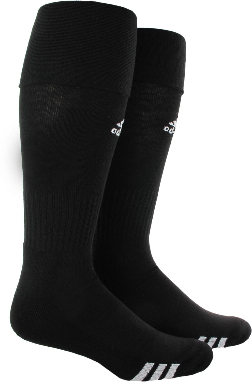 Hit the pitch in confidence with the adidas Rivalry Over The Calf Socks 2 Pack. The 93% polyester, 3% nylon, 2% spandex and 2% natural latex rubber fabric gently hugs the calf for a snug feel, and the arch and ankle compression provides a supportive fit for long practices on your feet. The cushioned foot provides impact protection, and the moisture-wicking yarn draws sweat away for freshness. NCAA compliant.