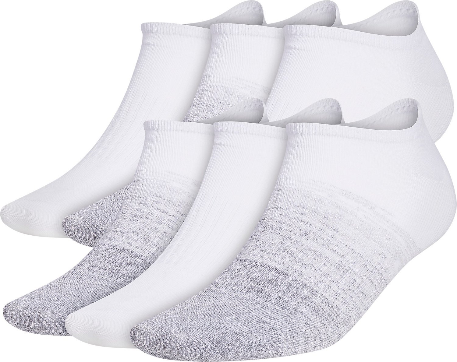 Enjoy lightweight comfort in your adidas Superlight Badge of Sport II No Show Socks 6 Pack. The soft polyester-blend material is lightweight and durable, and is made with moisture-wicking yarns to help manage sweat during workouts. These socks are also built with integrated arch compression to give you the support you need.