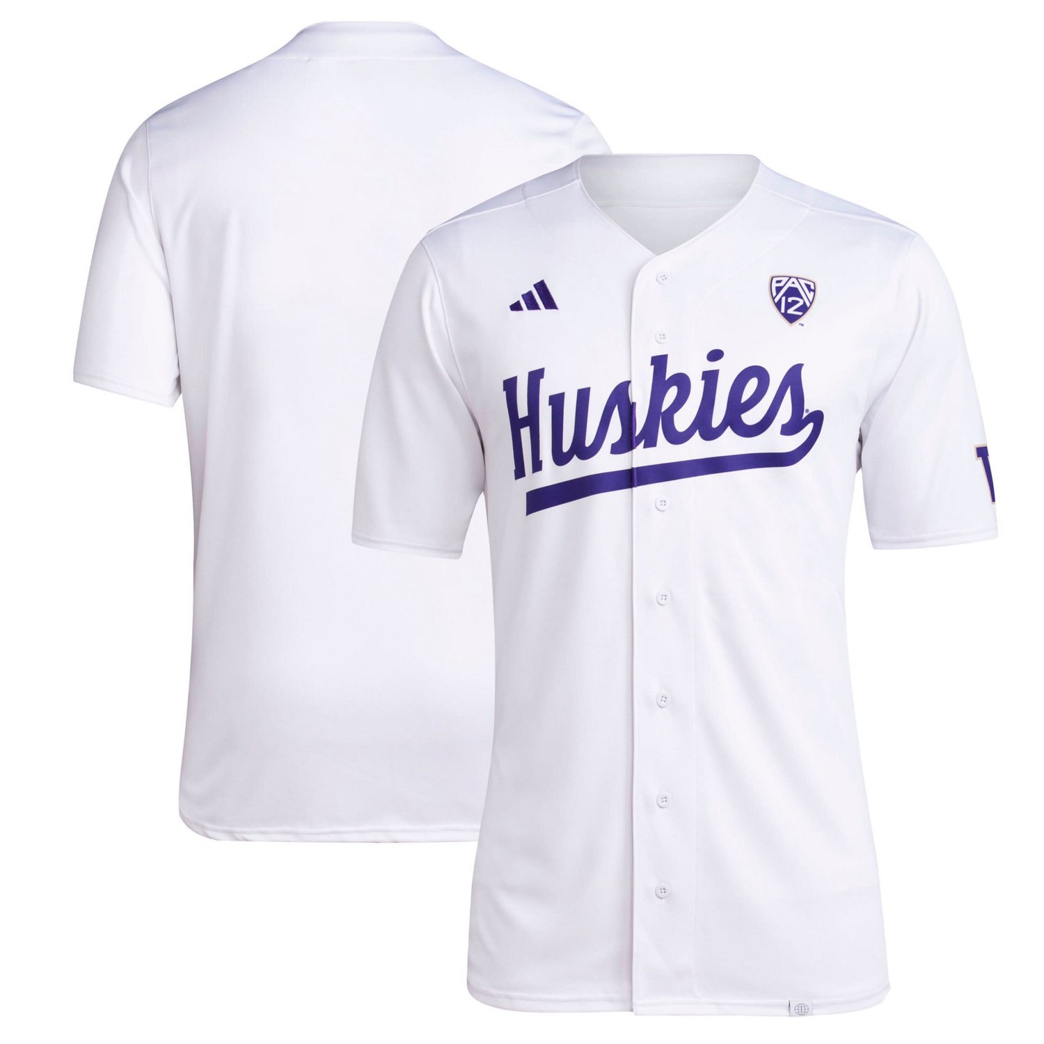 Get pumped up and ready to cheer on your Washington Huskies this season in this baseball jersey from adidas The crisp applique graphics and full-button front will have you looking like you should be the diamond Pair this with your go-to Washington Huskies ball cap for a complete look you will be proud to show off