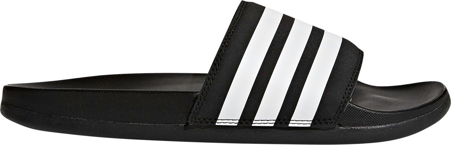 Step into the adidas Women's Adilette Comfort Slides after a tough match to help keep your feet feeling relaxed and comfortable. The Cloudfoam Plus contoured footbeds offer a plush feel with each step, and the bandage-style uppers provide a snug, comfortable fit. The lightweight EVA outsoles help deliver a sure footing.