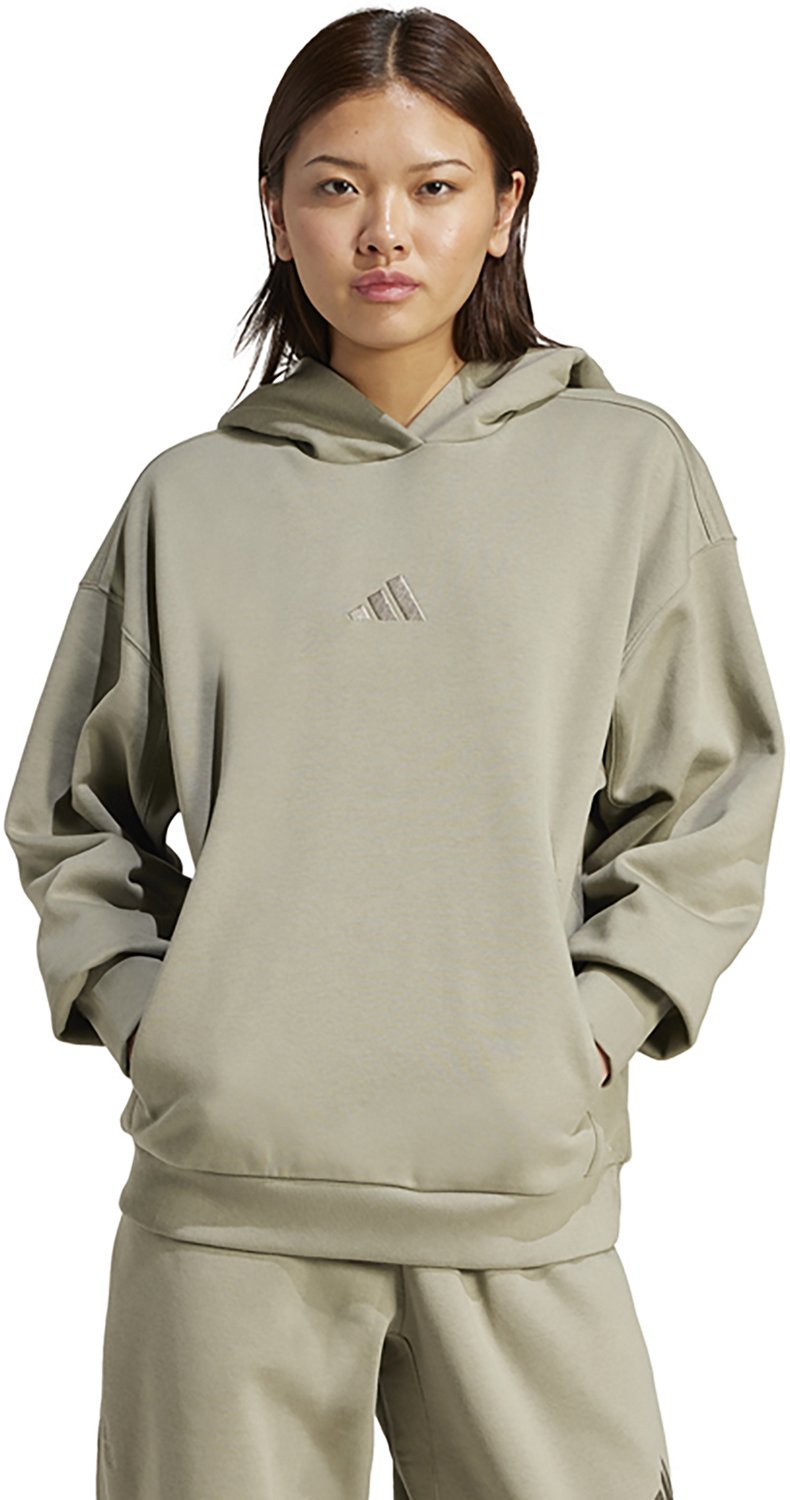 Lounge at home with the adidas Women's ALL SZN Fleece Boyfriend Hoodie. The 70% cotton and 30% polyester construction provides a comfortable feel and durability, and the brushed fleece interior offers warmth.